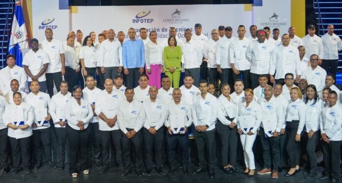 Bávaro-Punta Cana, RD. – El Instituto Nacional de Formación Técnico Profesional (INFOTEP) y el Hotel Lopesan Costa Bávaro realizaron la graduación de 82 técnicos formados mediante programas de validación ocupacional, en las áreas de Arte Culinario (Gastronomía), Bar y Restaurante, competencias claves para elevar la calidad del servicio en uno de los destinos turísticos más importantes del Caribe.
