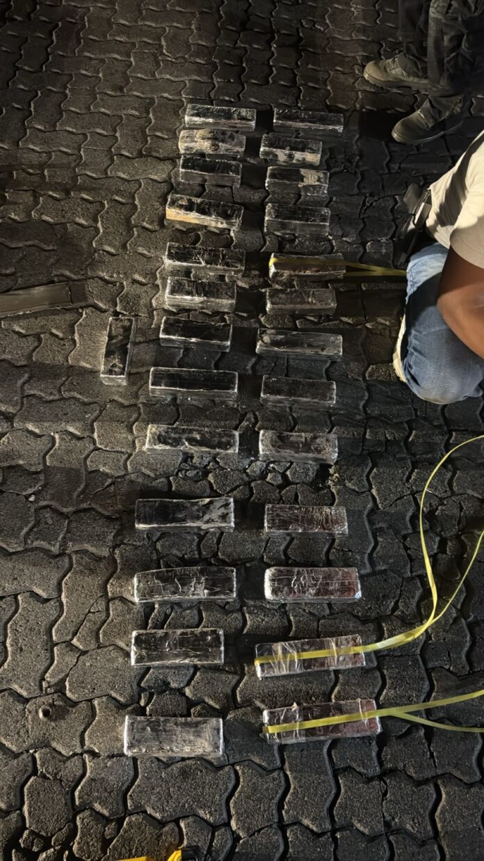 Tras iniciar el protocolo de verificación, los agentes y fiscales descubrieron varios compartimientos secretos, (caletas) ingeniosamente preparados en las puertas y en el piso del contenedor, en cuyo interior se incautaron un total de 69 paquetes, en forma de barras, envueltos en papel de aluminio y fundas plásticas.