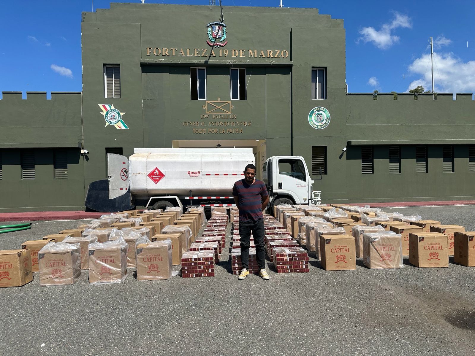 En un operativo realizado por miembros del Ejército de República Dominicana (ERD) en el Puesto de Chequeo Militar Km. 15 de Azua, fue ocupado un cargamento de más de un millón cigarrillos que fueron introducidos de manera ilegal al país, ocultos en un camión tipo tanquero.