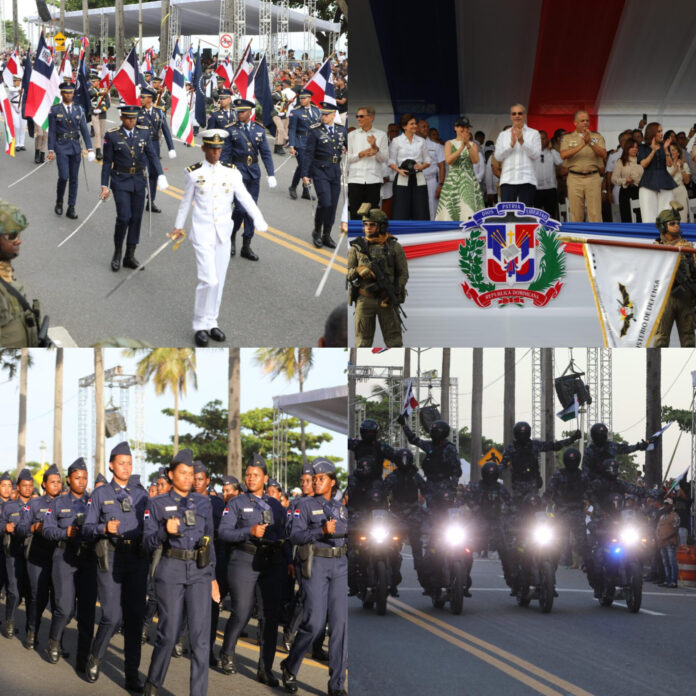 Santo Domingo.– Con una imponente demostración de capacidad, disciplina y modernización de los cuerpos castrenses, el presidente Luis Abinader encabezó este 27 de febrero el desfile militar conmemorativo del 182 aniversario de la Independencia Nacional, reafirmando el compromiso de las Fuerzas Armadas y la Policía Nacional con la defensa de la soberanía y la seguridad del pueblo dominicano.