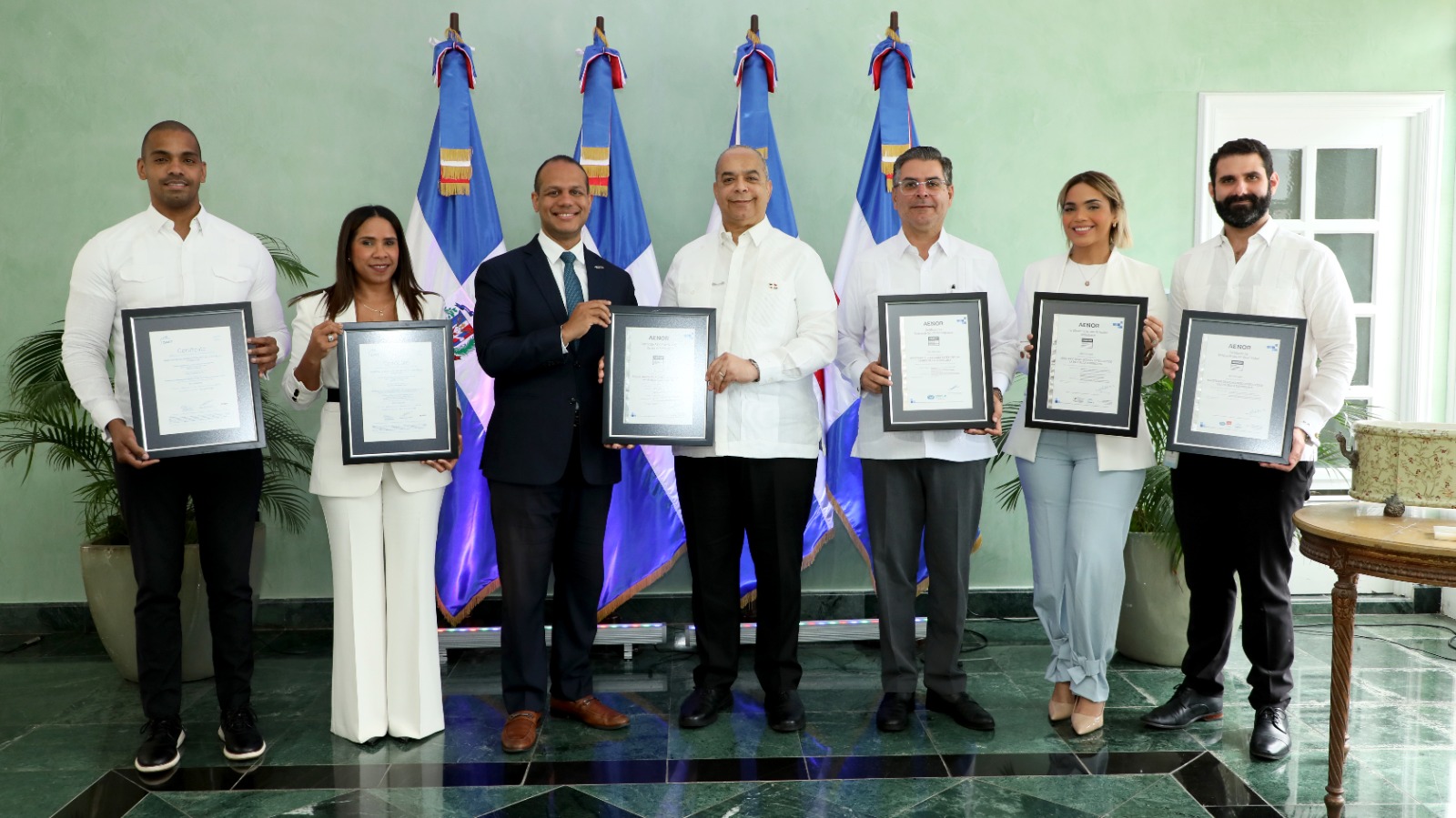 En representación del canciller Roberto Álvarez, estos certificados fueron recibidos por el viceministro para Asuntos Consulares y Migratorios, Opinio Díaz, de la mano del señor Ariel Espejo, director de AENOR República Dominicana, en presencia de directores de las áreas que fueron abarcadas en la auditoría externa.