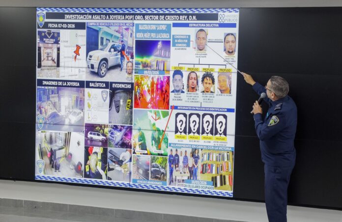 La Policía Nacional dio a conocer los avances de la investigación del asalto a mano armada perpetrado contra la joyería Popi Oro, ubicada en el sector Cristo Rey, Distrito Nacional, con la detención de dos de los presuntos autores, la identificación de otros implicados y la recolección de múltiples evidencias que fortalecen el proceso investigativo.