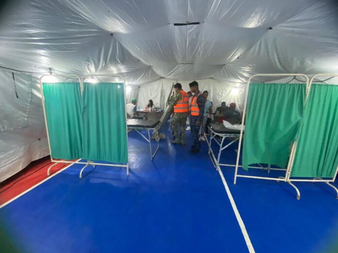 Como parte de la respuesta inmediata, el Ministerio de Salud, en coordinación con el Centro de Operaciones de Emergencias (COE) y el Servicio Nacional de Salud (SNS), procedió a la instalación de un hospital móvil en el Multiuso Deportivo de Villa Montellano, Puerto Plata, con el objetivo de brindar atención oportuna ante la situación.